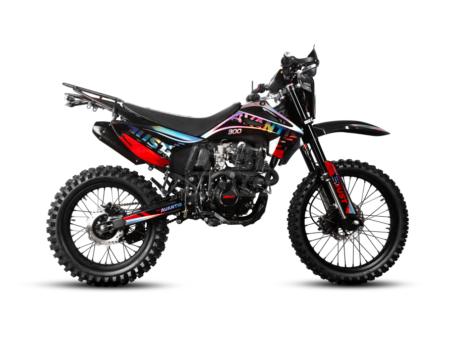 Avantis Just CB300F — мощный и выносливый эндуро с двигателем CB300F и карбюратором Nibbi PE30, готовый к серьёзным маршрутам. Отличный вариант как для новичков, так и для райдеров с опытом — эта техника не пугает, а помогает учиться и прогрессировать.