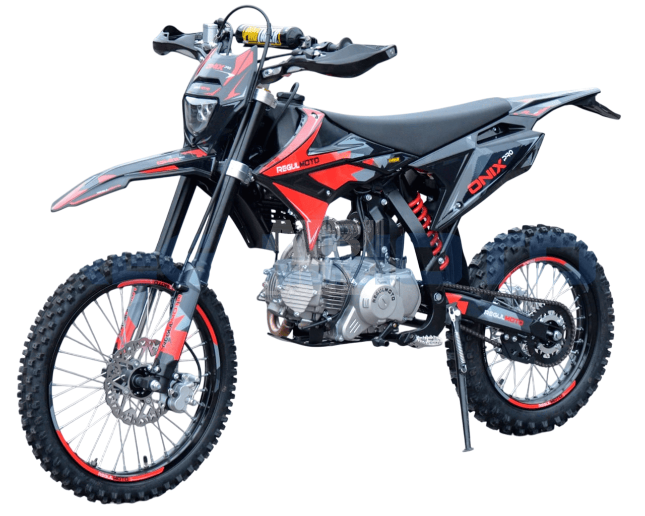 Regulmoto ONIX PRO 150 — это мощный питбайк для более опытных райдеров, ищущих баланс между производительностью и компактностью. С двигателем 150 куб. см и мощностью 15 л.с., он создан для динамичной езды по бездорожью и мотокроссовых трасс.