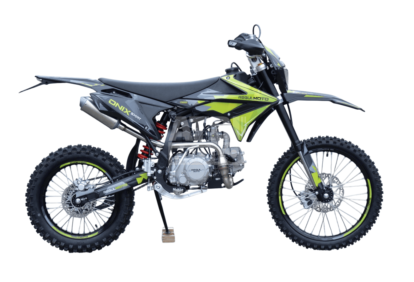 Regulmoto ONIX SPORT 140 — это питбайк для энтузиастов, которые ищут сочетание мощности, стиля и доступной цены. С двигателем 140 куб. см, он предлагает отличные характеристики для мотокросса и активного отдыха на бездорожье.